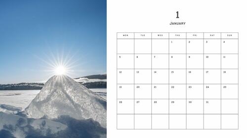 気持ちが明るくなるような、四季を感じる写真が主役のカレンダーになっています。
