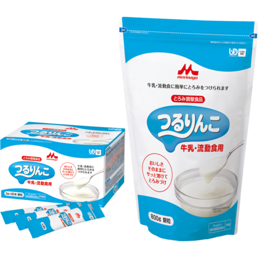 牛乳や流動食に加えてかき混ぜるだけで、簡単にとろみをつけられる、とろみ調整食品。